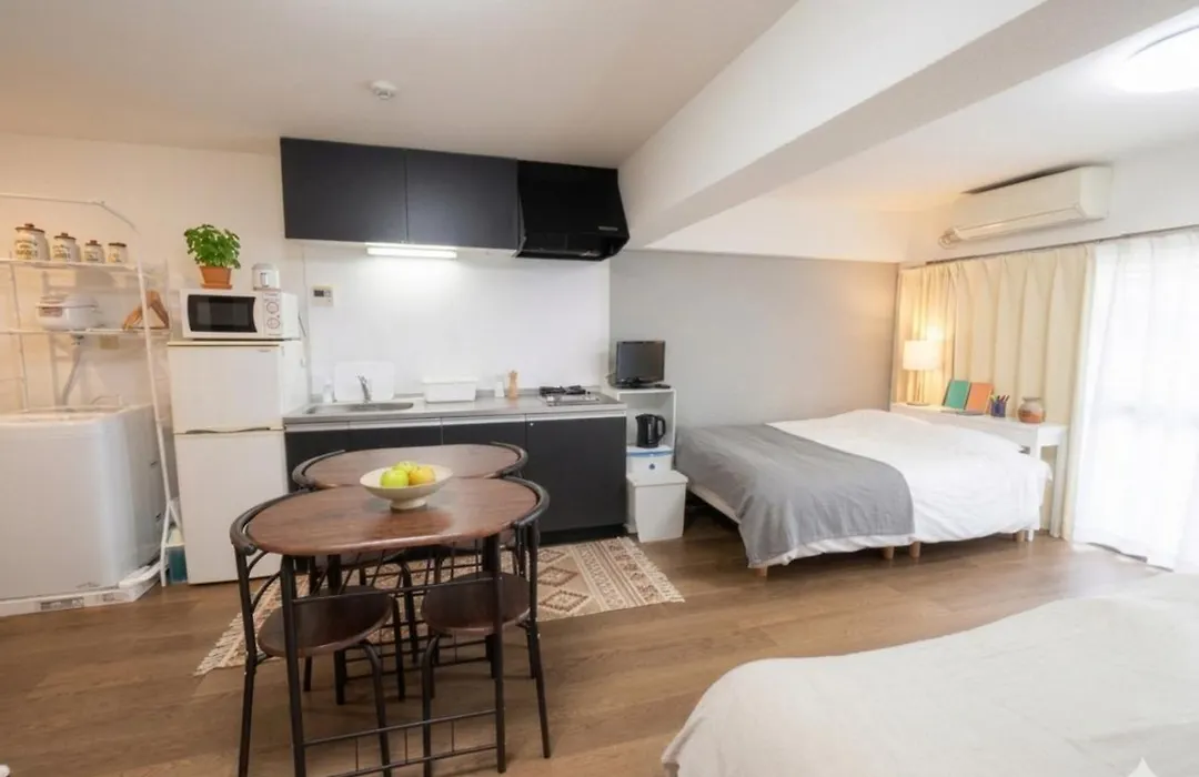 Newly Renovated 2025 秋リフォーム済 Rc206 Apartment has a balcony and a fully equipped kitchen, and comforts such as air conditioning and a washing machine. A highlight of this accommodation for guests is the presence of a hairdryer, towels, and slippers in the bathroom. Additionally, you'll find a bidet, a separate toilet, and a shower.